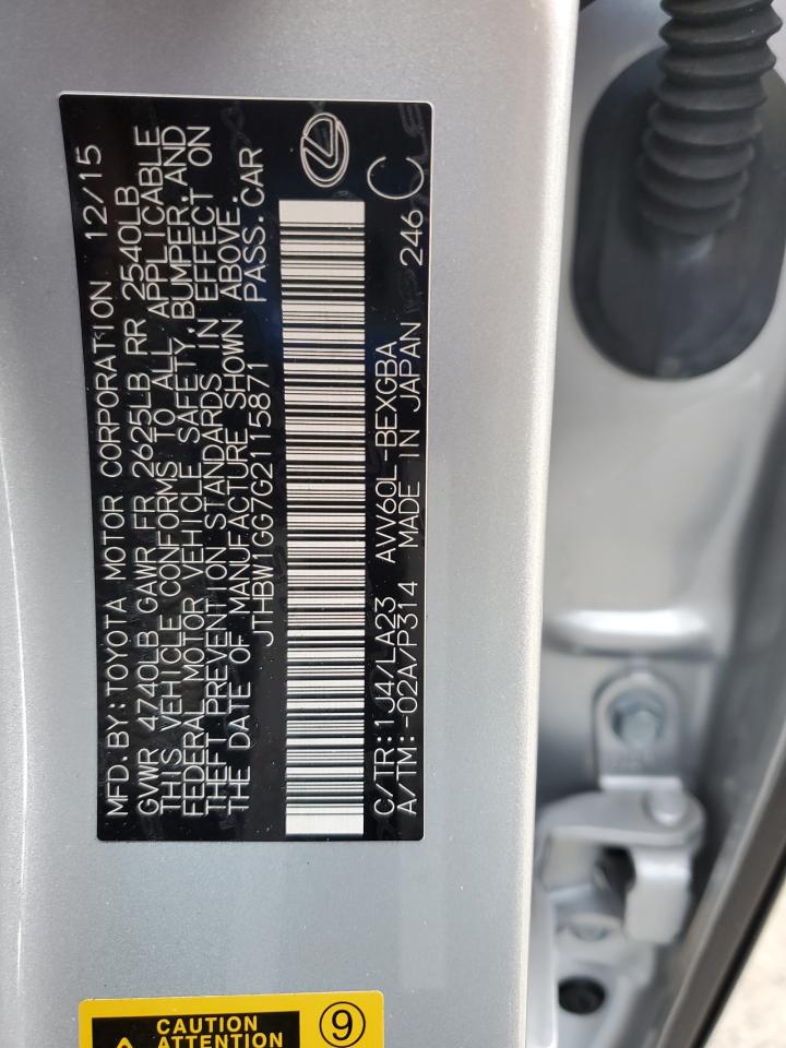 2016 LEXUS ES 300H - JTHBW1GG7G2115871, цвет - Серебряный, 2.5, Гибрид, из США