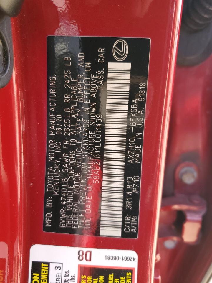 2020 LEXUS ES 300H - 58AE21B11LU011439, цвет - Красный, 2.5, Гибрид, из США
