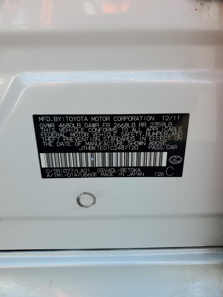 2012 LEXUS ES 350 - JTHBK1EG1C2487120, цвет - Белый, 3.5, Бензин, из США