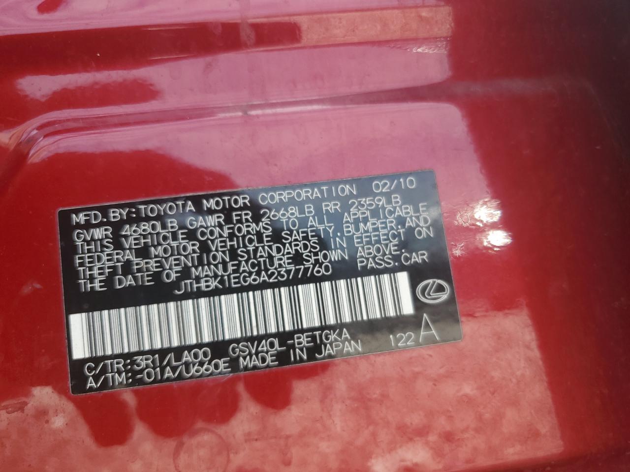 2010 LEXUS ES 350 - JTHBK1EG6A2377760, цвет - Красный, 3.5, Бензин, из США