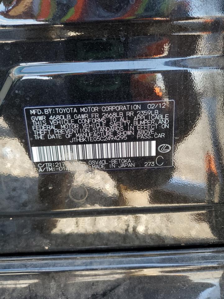 2012 LEXUS ES 350 - JTHBK1EG5C2494295, цвет - Черный, 3.5, Бензин, из США