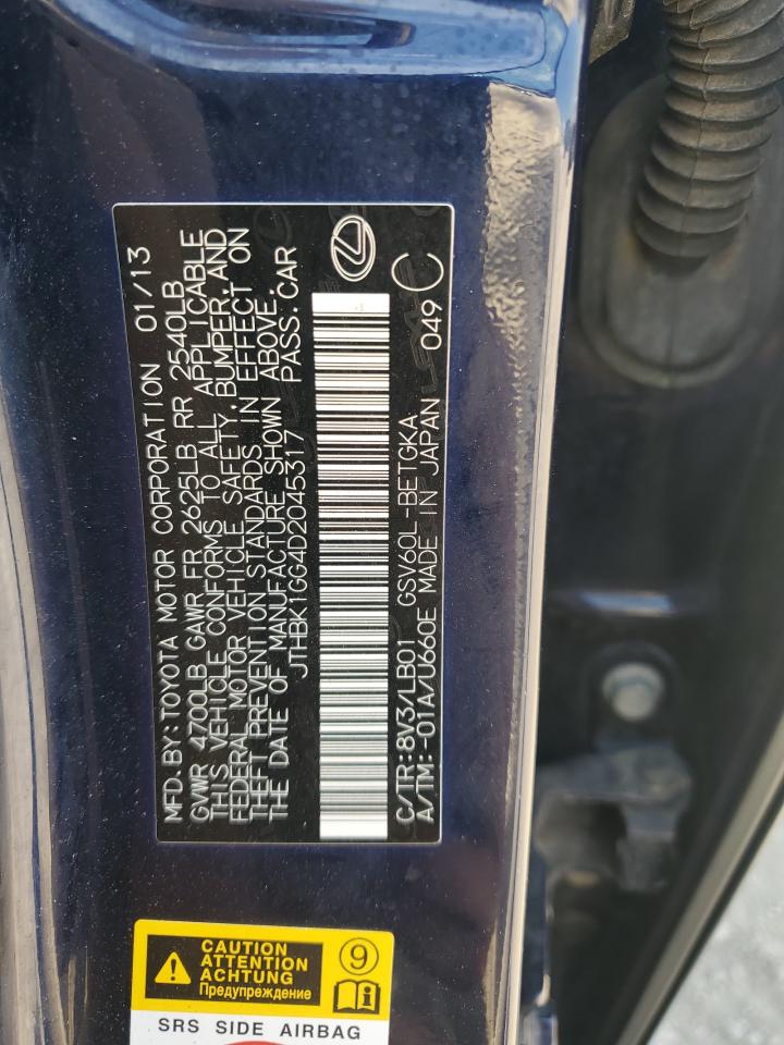 2013 LEXUS ES 350 - JTHBK1GG4D2045317, цвет - Синий, 3.5, Бензин, из США