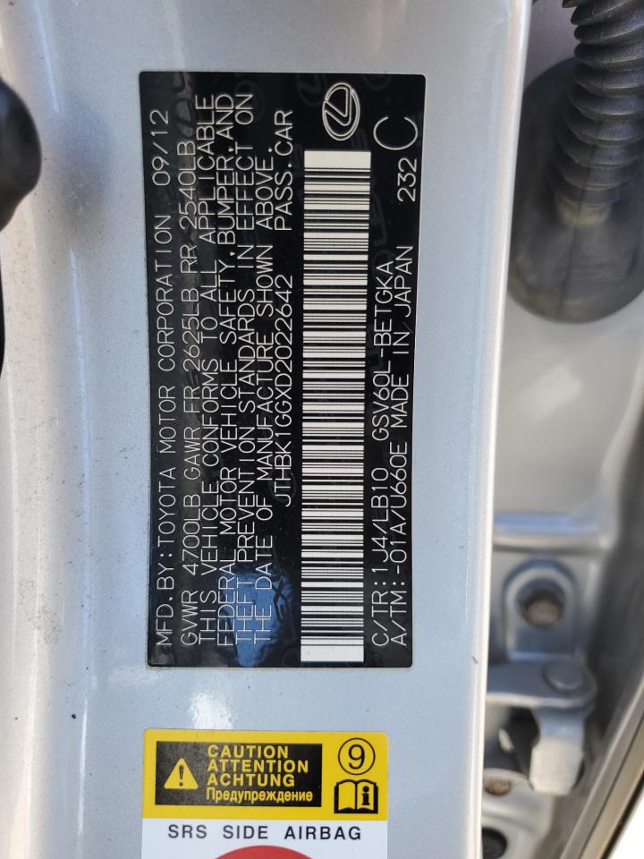 2013 LEXUS ES 350 - JTHBK1GGXD2022642, цвет - Серебряный, 3.5, Бензин, из США