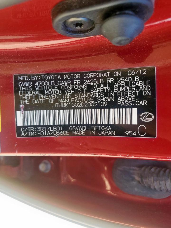 2013 LEXUS ES 350 - JTHBK1GG2D2002109, цвет - Бургундия, 3.5, Бензин, из США