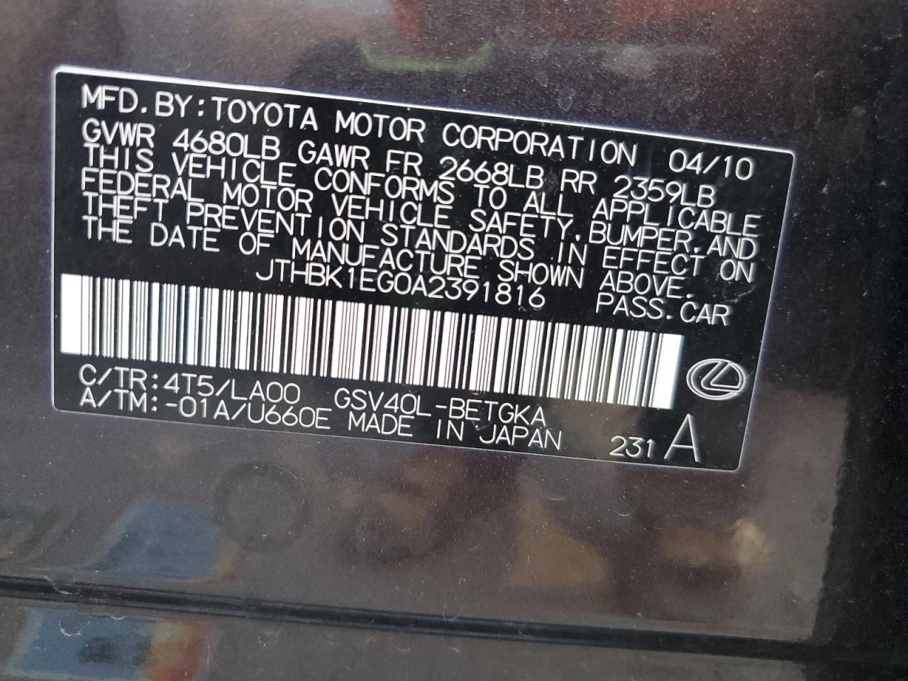 2010 LEXUS ES 350 - JTHBK1EG0A2391816, цвет - Древесный уголь, 3.5, Бензин, из США
