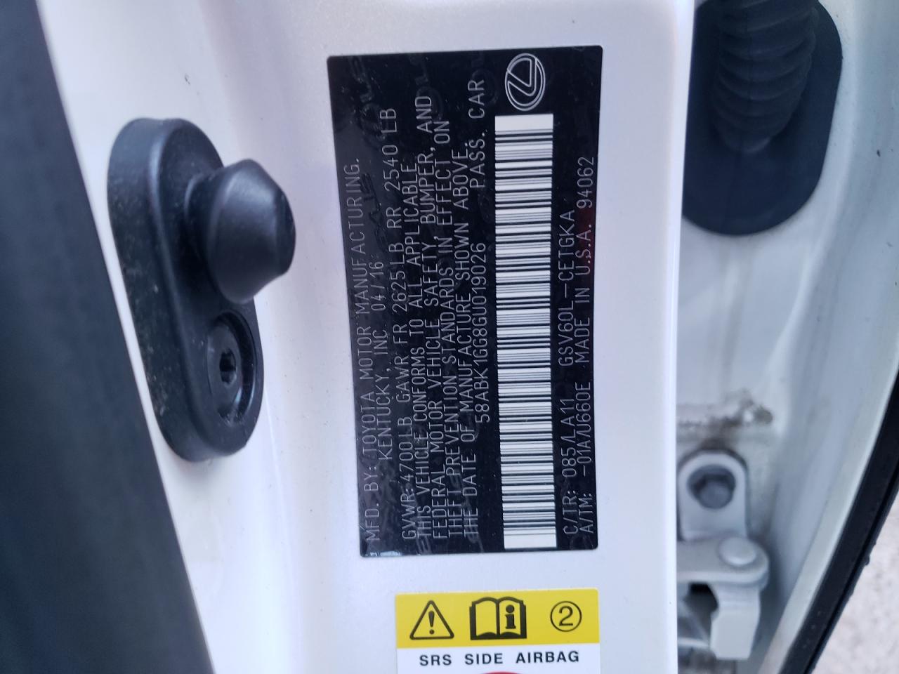 2016 LEXUS ES 350 - 58ABK1GG8GU019026, цвет - Белый, 3.5, Бензин, из США