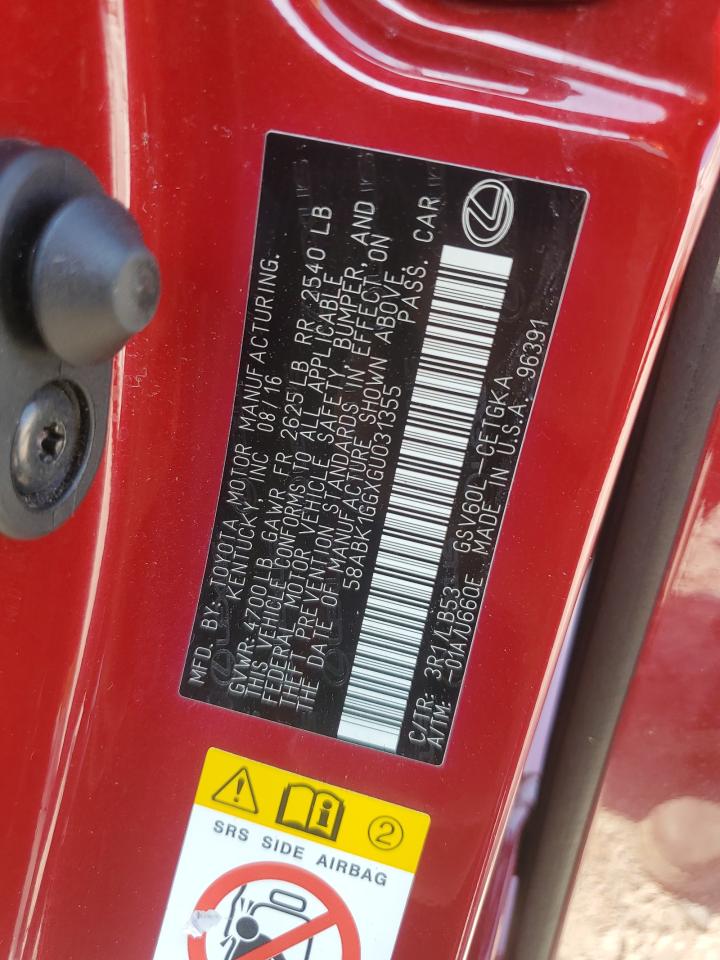 2016 LEXUS ES 350 - 58ABK1GGXGU031355, цвет - Бургундия, 3.5, Бензин, из США