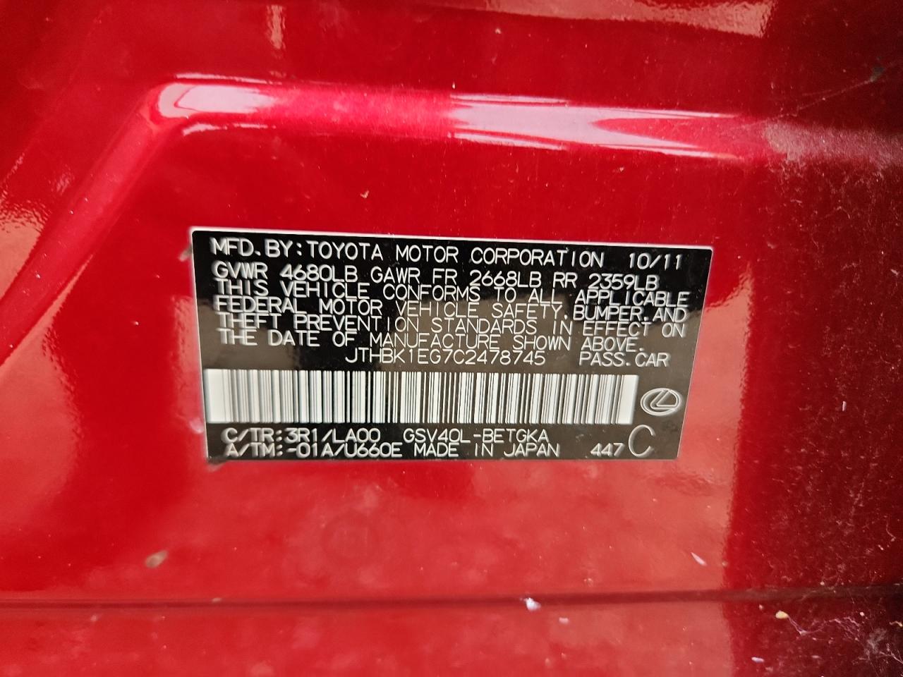 2012 LEXUS ES 350 - JTHBK1EG7C2478745, цвет - Красный, 3.5, Бензин, из США
