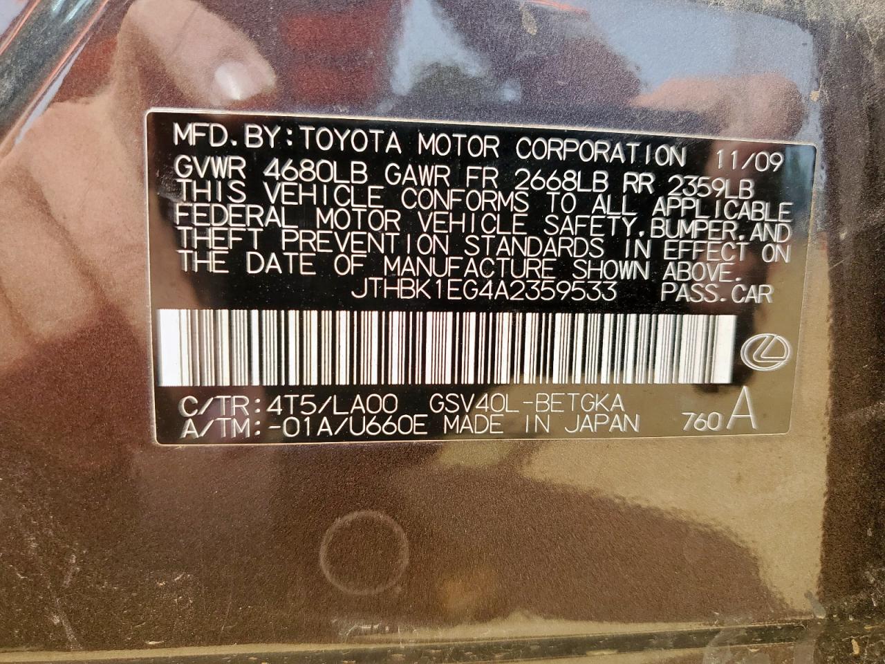 Цвет СерыйЦилиндры 6VIN JTHBK1EG4A2359533Состояние Заводится и едет (проверено)Повреждения Передняя или задняяДата аукциона 2025-10-20