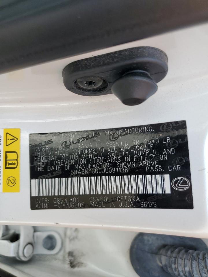 2018 LEXUS ES 350 - 58ABK1GG0JU081138, цвет - Белый, 3.5, Бензин, из США