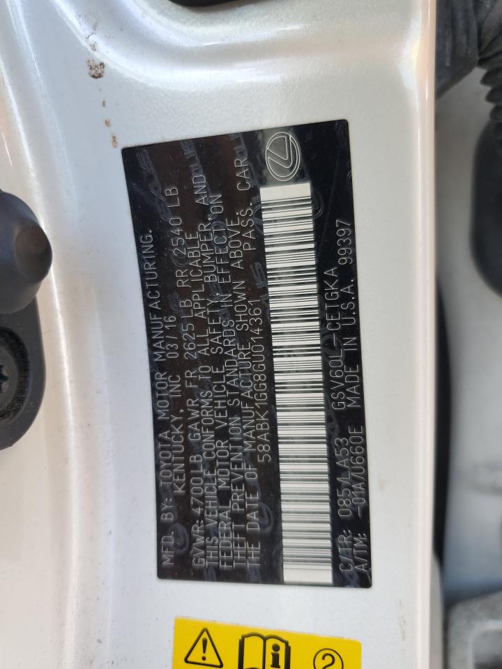2016 LEXUS ES 350 - 58ABK1GG8GU014361, цвет - Белый, 3.5, Бензин, из США