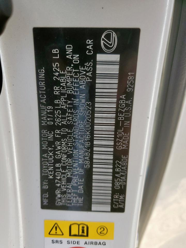 2019 LEXUS ES 350 - 58ABZ1B16KU020523, цвет - Белый, 3.5, Бензин, из США