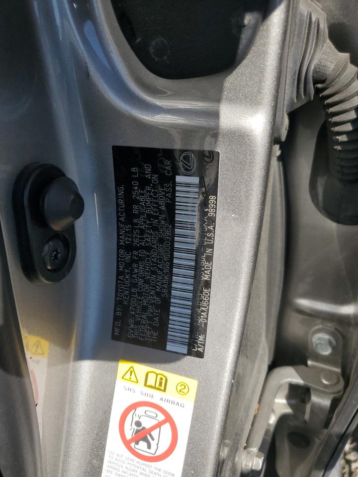 2016 LEXUS ES 350 - 58ABK1GG1GU003962, цвет - Серый, 3.5, Бензин, из США