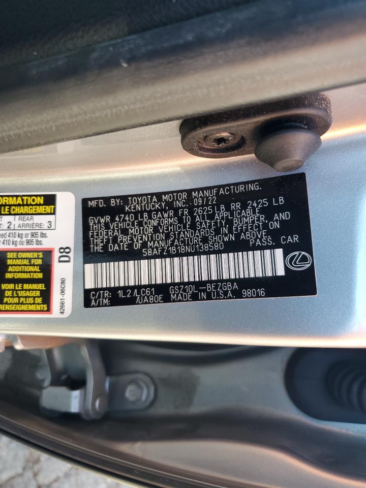 2022 LEXUS ES 350 - 58AFZ1B18NU138580, цвет - Серебряный, 3.5, Бензин, из США
