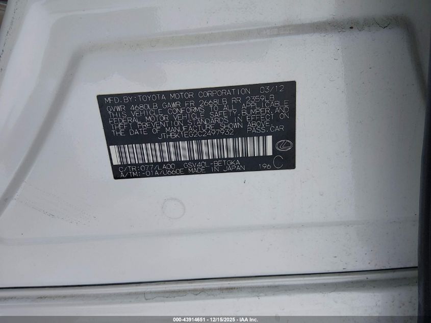 2012 LEXUS ES 350