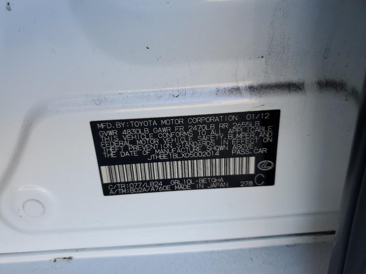 Цвет БелыйЦилиндры 6Привод Задний приводVIN JTHBE1BLXD5002014Состояние Заводится и едет (проверено)Повреждения ЗадняяДата аукциона 2025-10-22