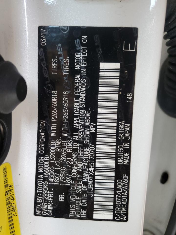 2017 LEXUS GX 460 - JTJBM7FX4H5170707, цвет - Белый, 4.6, Бензин, Полный привод из США
