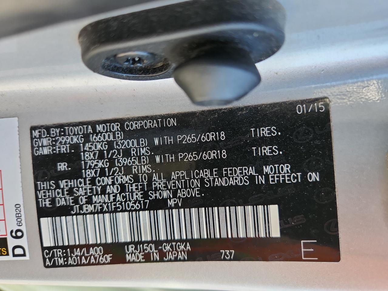 Цвет СеребряныйЦилиндры 8Привод Полный приводVIN JTJBM7FX1F5105617Состояние Заводится и едет (проверено)Повреждения Задняя
