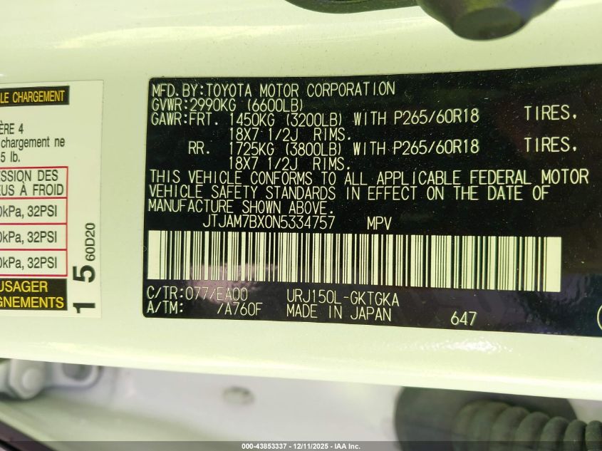 Цвет БелыйЦилиндры 8Привод Полный приводVIN JTJAM7BX0N5334757Состояние Заводится и едет (проверено)Повреждения Передняя или задняя