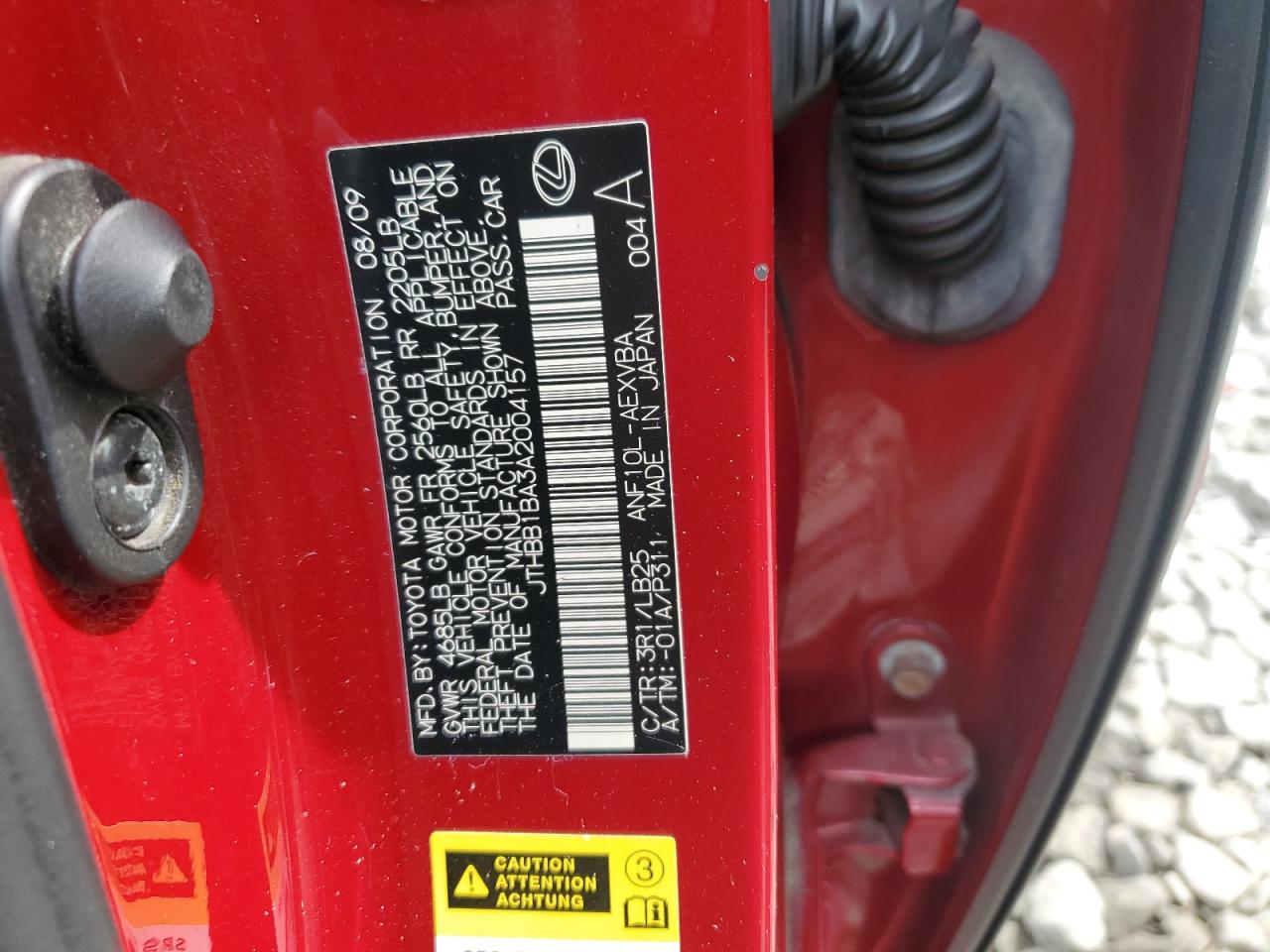 2010 LEXUS HS - JTHBB1BA3A2004157, цвет - Красный, 2.4, Гибрид, из США