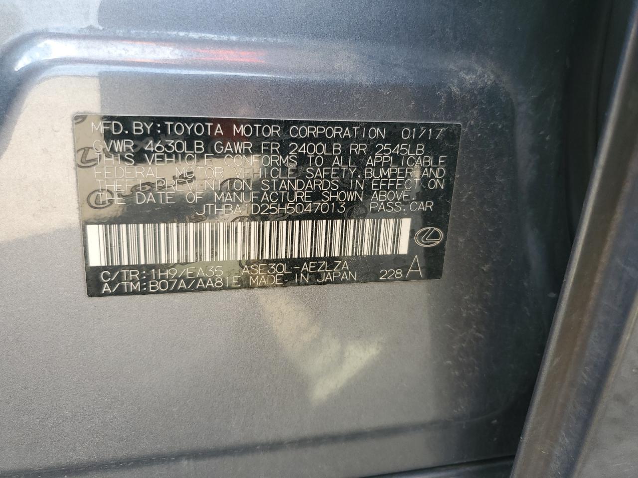 2017 LEXUS IS 200T - JTHBA1D25H5047013, цвет - Серый, 2.0, Бензин, Задний привод из США