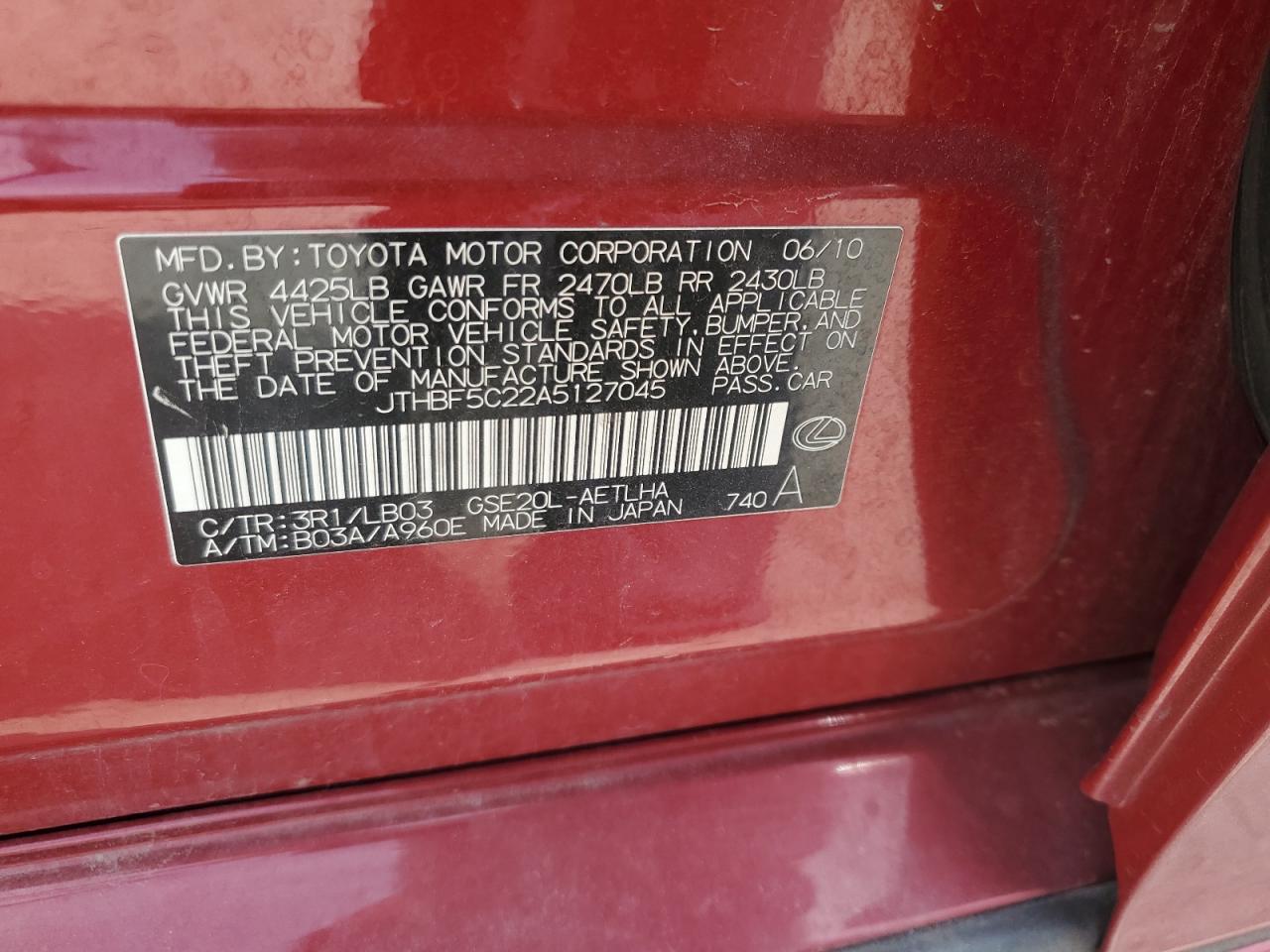 2010 LEXUS IS 250 - JTHBF5C22A5127045, цвет - Красный, 2.5, Бензин, Задний привод из США