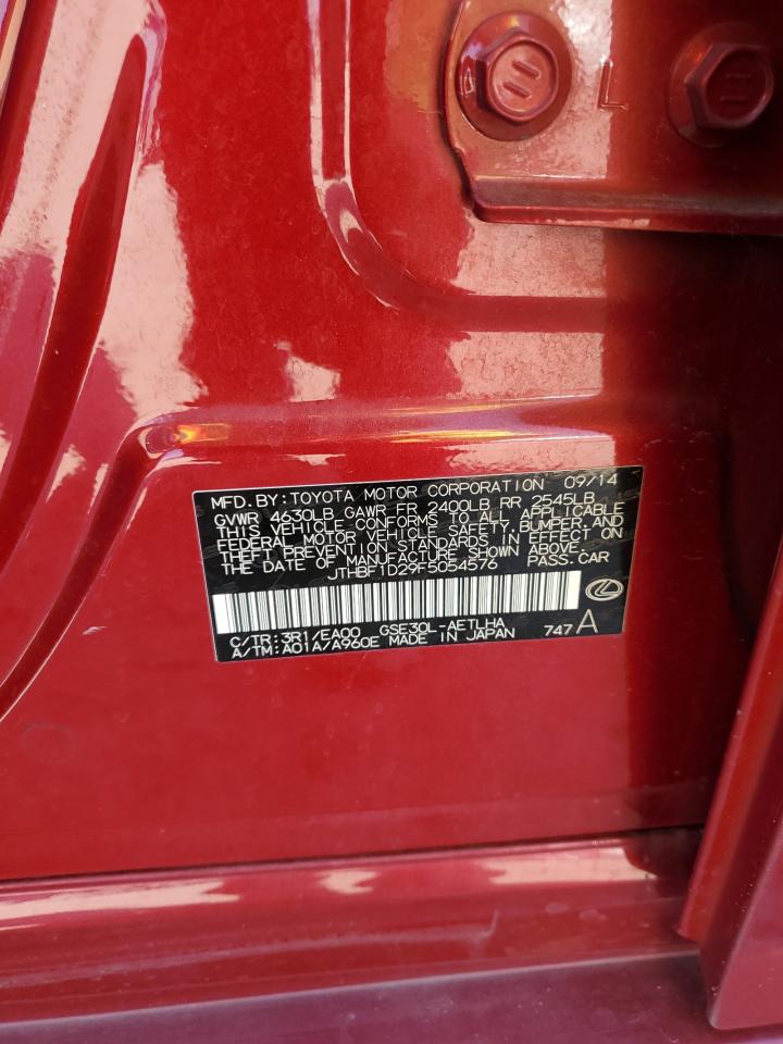 2015 LEXUS IS 250 - JTHBF1D29F5054576, цвет - Красный, 2.5, Бензин, Задний привод из США