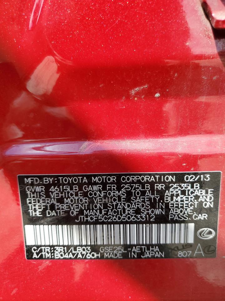 2013 LEXUS IS 250 - JTHCF5C26D5063312, цвет - Бургундия, 2.5, Бензин, Полный привод из США
