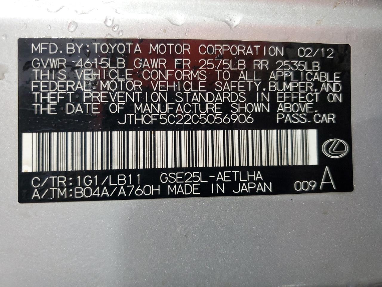 2012 LEXUS IS 250 - JTHCF5C22C5056906, цвет - Серебряный, 2.5, Бензин, Полный привод из США