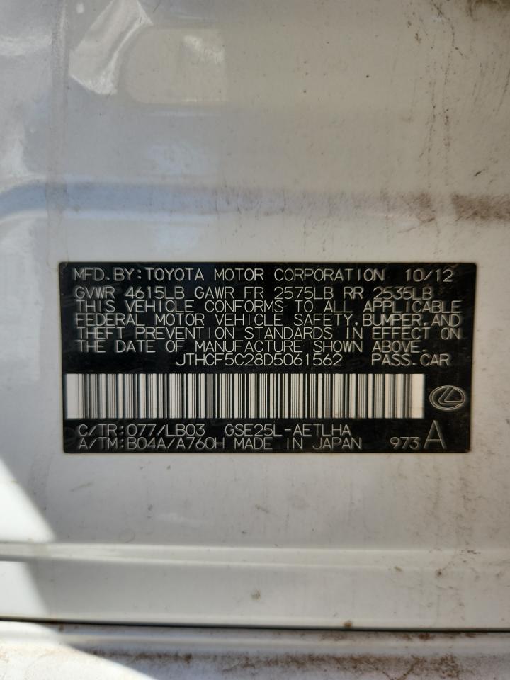 2013 LEXUS IS 250 - JTHCF5C28D5061562, цвет - Белый, 2.5, Бензин, Полный привод из США