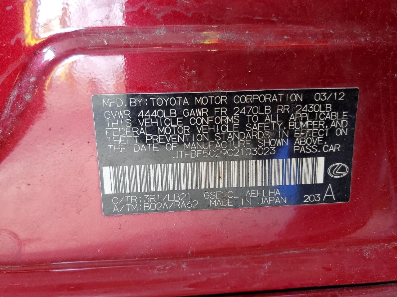 2012 LEXUS IS 250 - JTHBF5C29C2103023, цвет - Красный, 2.5, Бензин, Задний привод из США