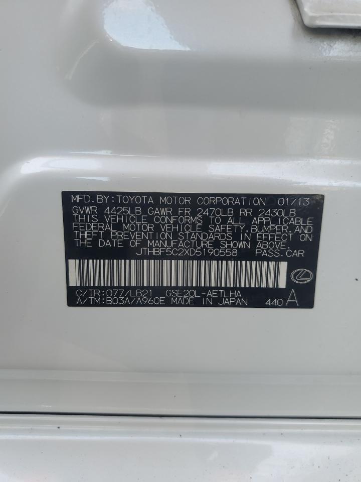 2013 LEXUS IS 250 - JTHBF5C2XD5190558, цвет - Белый, 2.5, Бензин, Задний привод из США