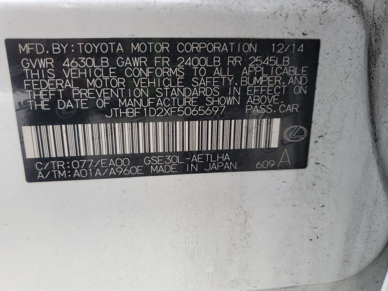 2015 LEXUS IS 250 - JTHBF1D2XF5065697, цвет - Белый, 2.5, Бензин, Задний привод из США