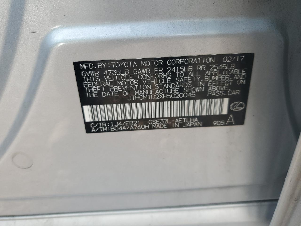 2017 LEXUS IS 300 - JTHCM1D2XH5020045, цвет - Серебряный, 3.5, Бензин, Полный привод из США