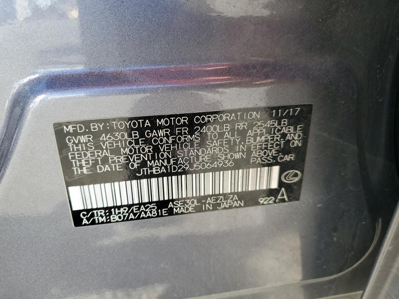 Цвет СеребряныйЦилиндры 4Привод Задний приводVIN JTHBA1D29J5064936Состояние Заводится и едет (проверено)Повреждения Отклоненный ремонт