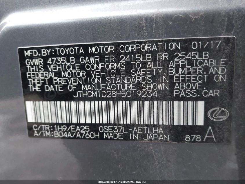 2017 LEXUS IS 300 - JTHCM1D28H5019234, цвет - Серый, 3.5, Бензин, Полный привод из США