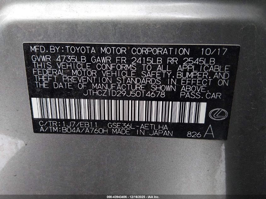 2018 LEXUS IS 350 - JTHCZ1D29J5014678, цвет - , 3.5, Бензин, Полный привод из США
