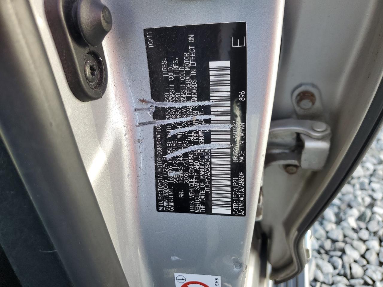 Цвет СеребряныйЦилиндры 8Привод Полный приводVIN JTJHY7AX2B4080801Состояние Заводится и едет (проверено)Повреждения НезначительныеДата аукциона 2025-10-20