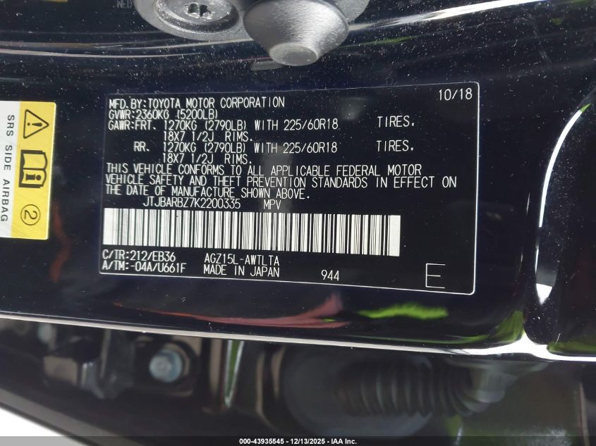 Цвет ЧерныйЦилиндры 4Привод Полный приводVIN JTJBARBZ7K2200335Состояние Заводится и едет (проверено)Повреждения Передняя или задняя