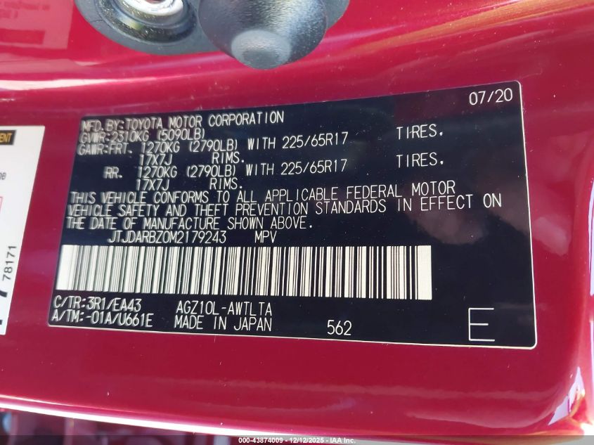 Цвет КрасныйЦилиндры 4Привод Передний приводVIN JTJDARBZ0M2179243Состояние Заводится и едет (проверено)Повреждения Левая сторона