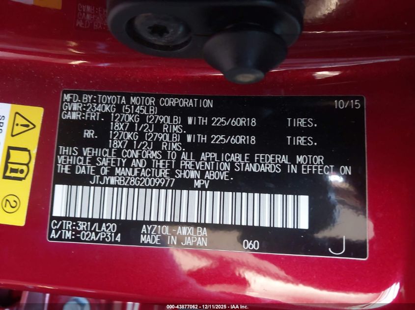 2016 LEXUS NX 300H - JTJYWRBZ8G2009977, цвет - Красный, 2.5, Гибрид, Передний привод из США