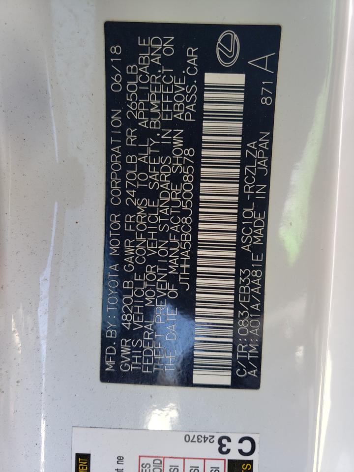 2018 LEXUS RC 300 - JTHHA5BC8J5008578, цвет - Белый, 2.0, Бензин, Задний привод из США