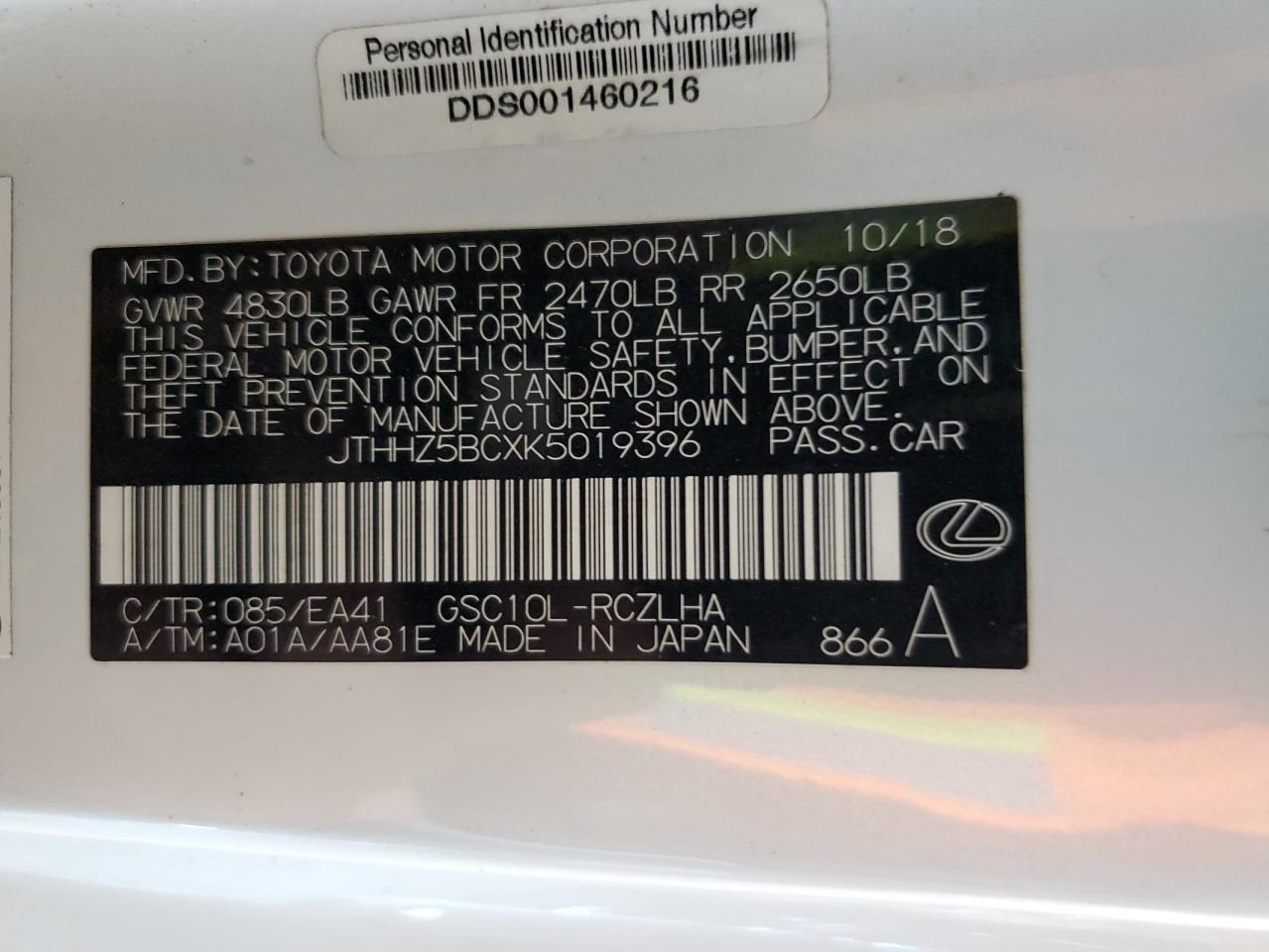 2019 LEXUS RC 350 - JTHHZ5BCXK5019396, цвет - Белый, 3.5, Бензин, Задний привод из США