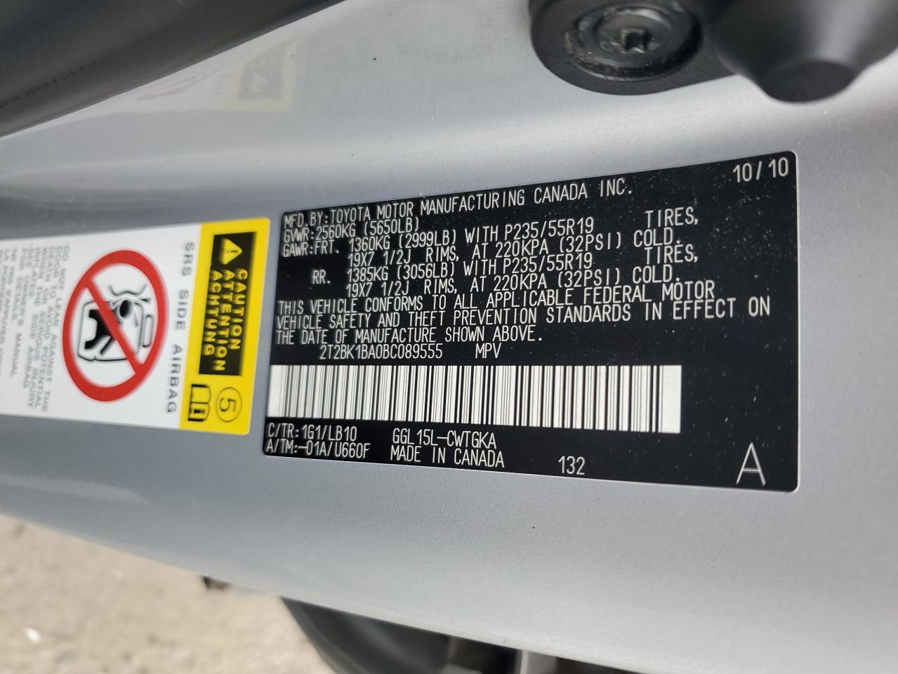 Цвет СеребряныйЦилиндры 6Привод Полный приводVIN 2T2BK1BA0BC089555Состояние НеизвестноПовреждения Передняя или задняя