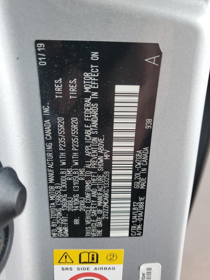 2019 LEXUS RX 350 - 2T2ZZMCA6KC133259, цвет - Серебряный, 3.5, Бензин, из США
