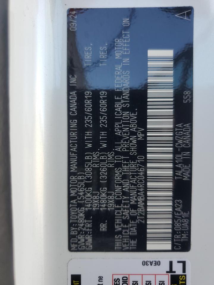 Цвет БелыйЦилиндры 4VIN 2T2BAMBA4RC046710Состояние НеизвестноПовреждения Передняя или задняяДата аукциона 2025-10-24