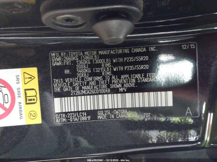 Цвет ЧерныйЦилиндры 6Привод Полный приводVIN 2T2BZMCA2GC010048Состояние СтационарноПовреждения Опрокидывание
