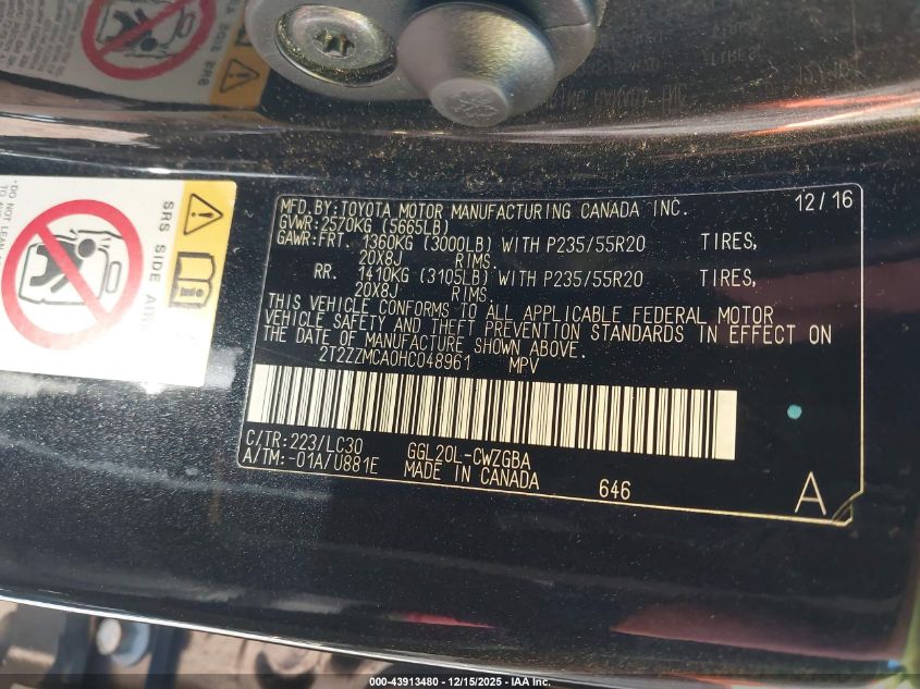 Цвет ЧерныйЦилиндры 6Привод Передний приводVIN 2T2ZZMCA0HC048961Состояние НеизвестноПовреждения Правая сторона