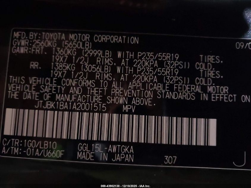Цвет СерыйЦилиндры 6Привод Полный приводVIN JTJBK1BA1A2001515Состояние СтационарноПовреждения Передняя или задняя