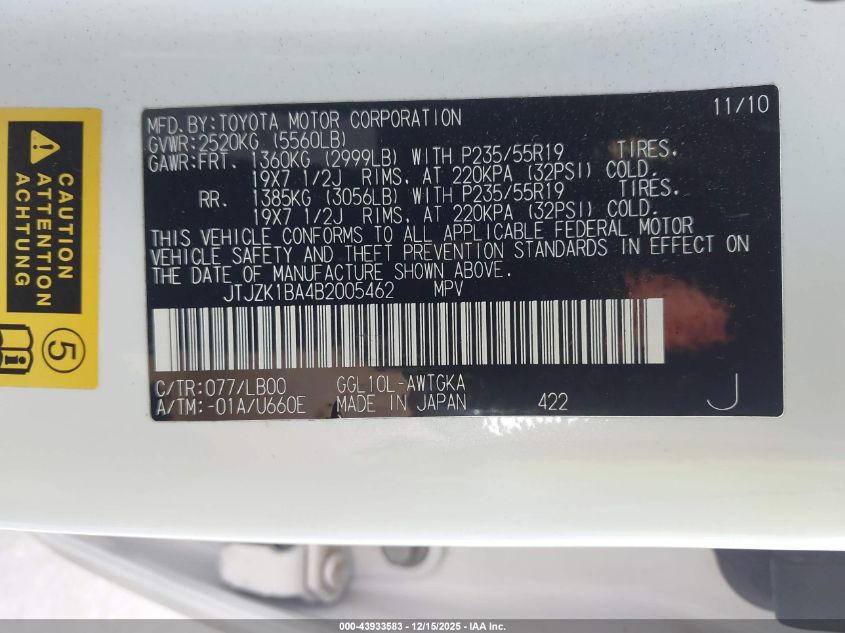 Цвет БелыйЦилиндры 6Привод Передний приводVIN JTJZK1BA4B2005462Состояние Заводится и едет (проверено)Повреждения Передняя или задняя